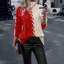 • Load image into Gallery viewer, New Women's Fashion Color Contrast Stitching Symmetrical High Collar Loose Sweater