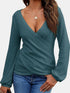 Women's long sleeved wrap top sexy casual waffle knit V-neck shirt solid color